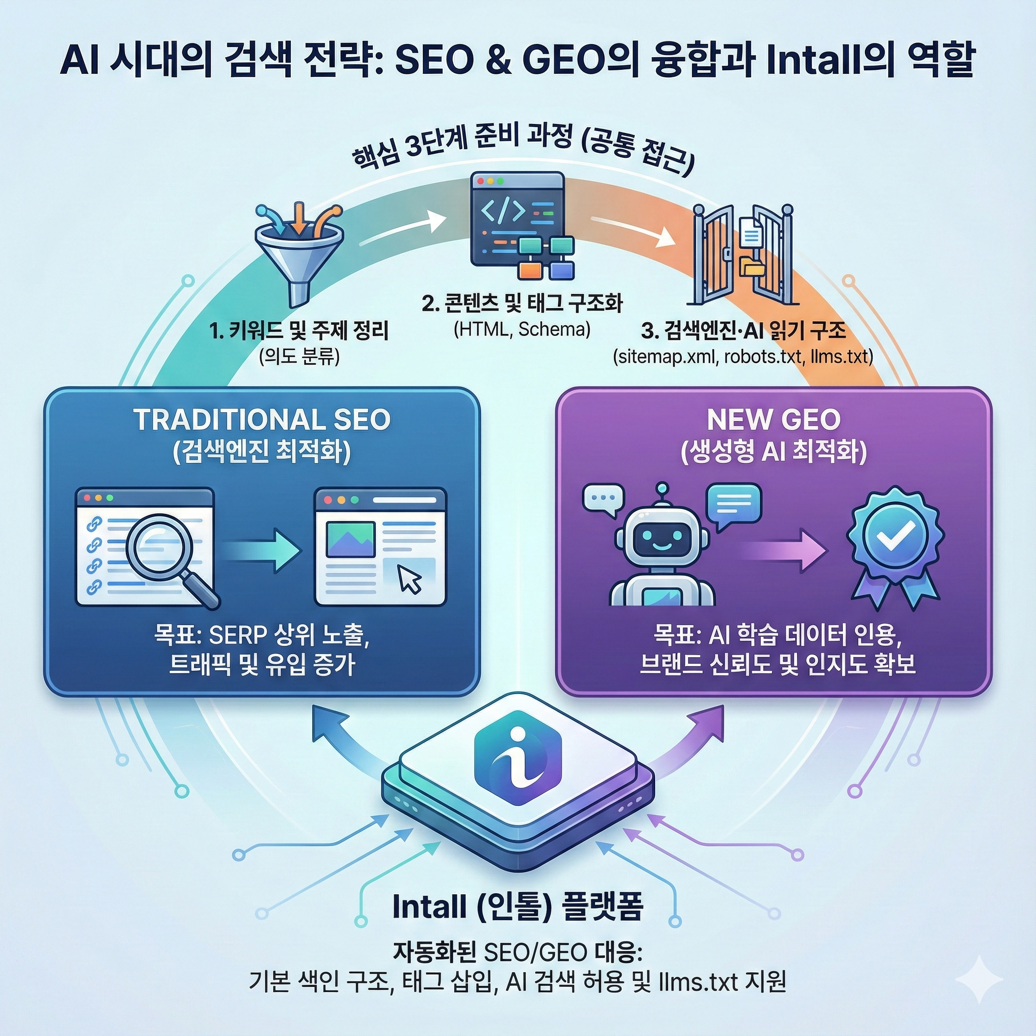 SEO와 GEO는 접근 방식은 다르지만, 준비 과정은 유사합니다. 다음 3단계를 통해 두 전략을 동시에 준비할 수 있습니다.