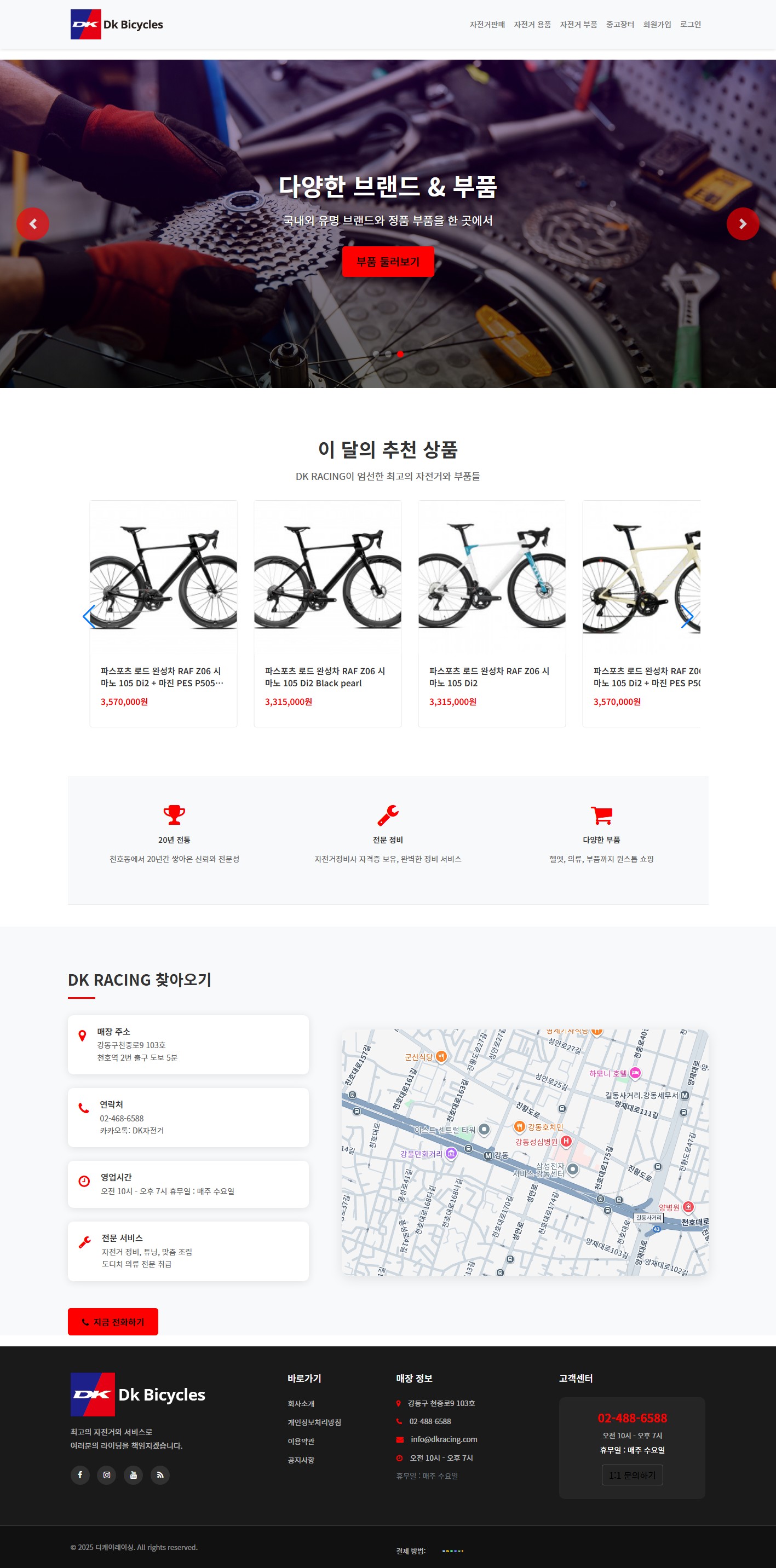 천호 자전거거리에 자리잡고 있는 레이싱 전문 업체입니다. 온라인 판매와 회사소개기능이 들어잇는 홈페이지 입니다.